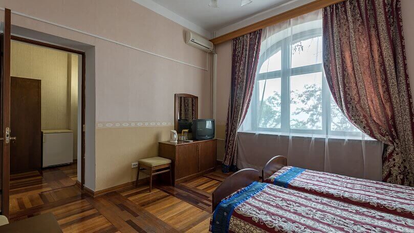 - ТВ, кондиционер, кулер, Wi-Fi, фен, холодильник, чайник.