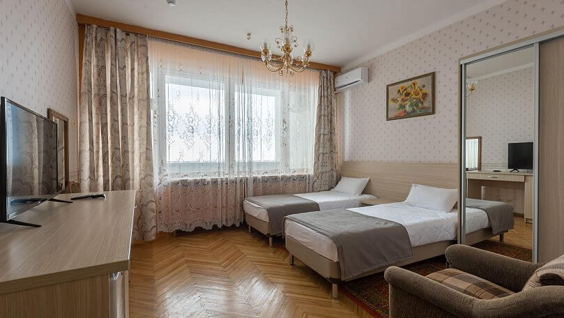 Площадь: 22 м². В номере две раздельные кровати или одна большая кровать. Дополнительно раскладушка. Дети до 4 лет бесплатно (без доп. мест, но не более допустимого количества человек).