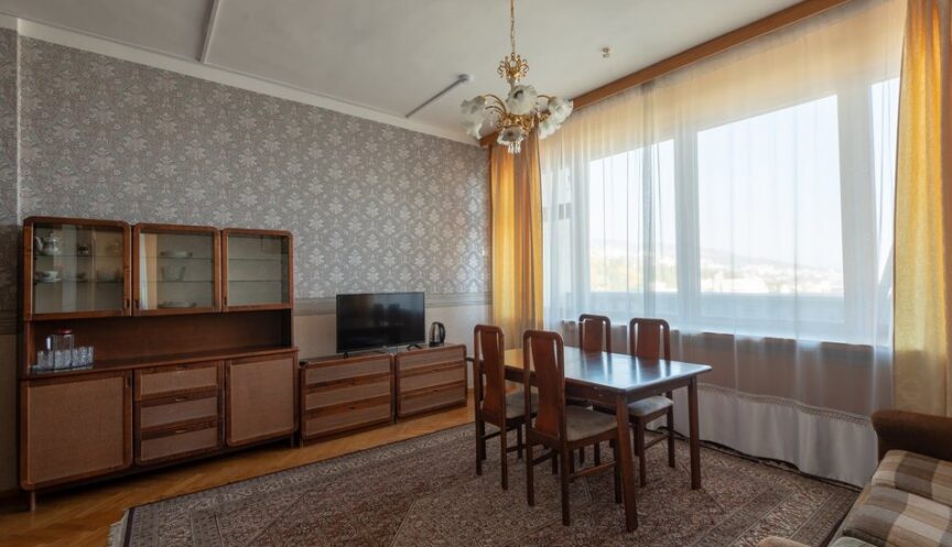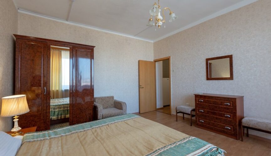 Двухкомнатный номер для уютного проживания двух-трех гостей: спальня с двуспальной кроватью или двумя односпальными, гостиная с мягкой мебелью, балкон на южную сторону с видом на море. В общественных зонах обеспечивается стабильный сигнал Wi-Fi.